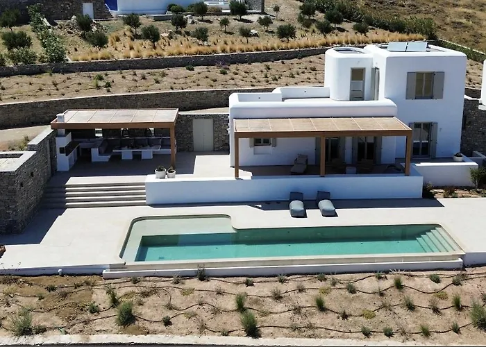Eine Terrasse bietet zudem einen Ausblick aufs Meer. Die Badezimmer in der Villa in Márpissa sind mit einer behindertengerechten Dusche, einer Badewanne und einer getrennten Toilette ausgestattet. Ein Haartrockner, kostenlose Toilettenartikel und Morgenmäntel gehören auch zu den Badezimmern.